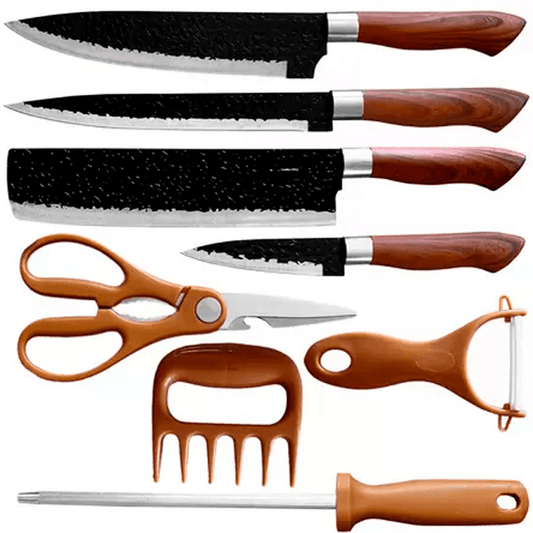 Kit de Facas para Churrasco e Cozinha com Garra e Amolador - 8 Peças em Aço InoxidávelPreço normal De R$ 169,00Preço normalPreço unitário / porR$ 0,00Preço promocional De R$ 169,00