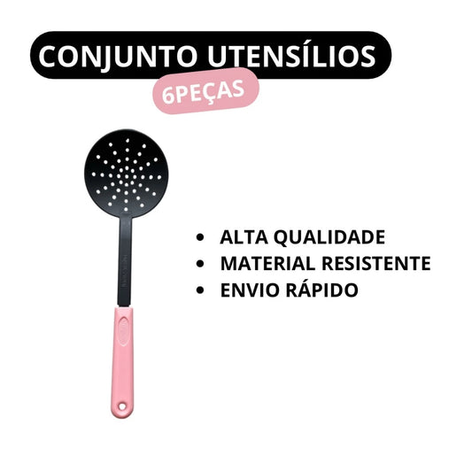 Kit Utensílios de Cozinha 6 Peças Nylon Rosa e Verde - Resistente e FuncionalPreço normal R$ 129,00Preço normalPreço unitário / porR$ 149,00Preço promocional R$ 129,00